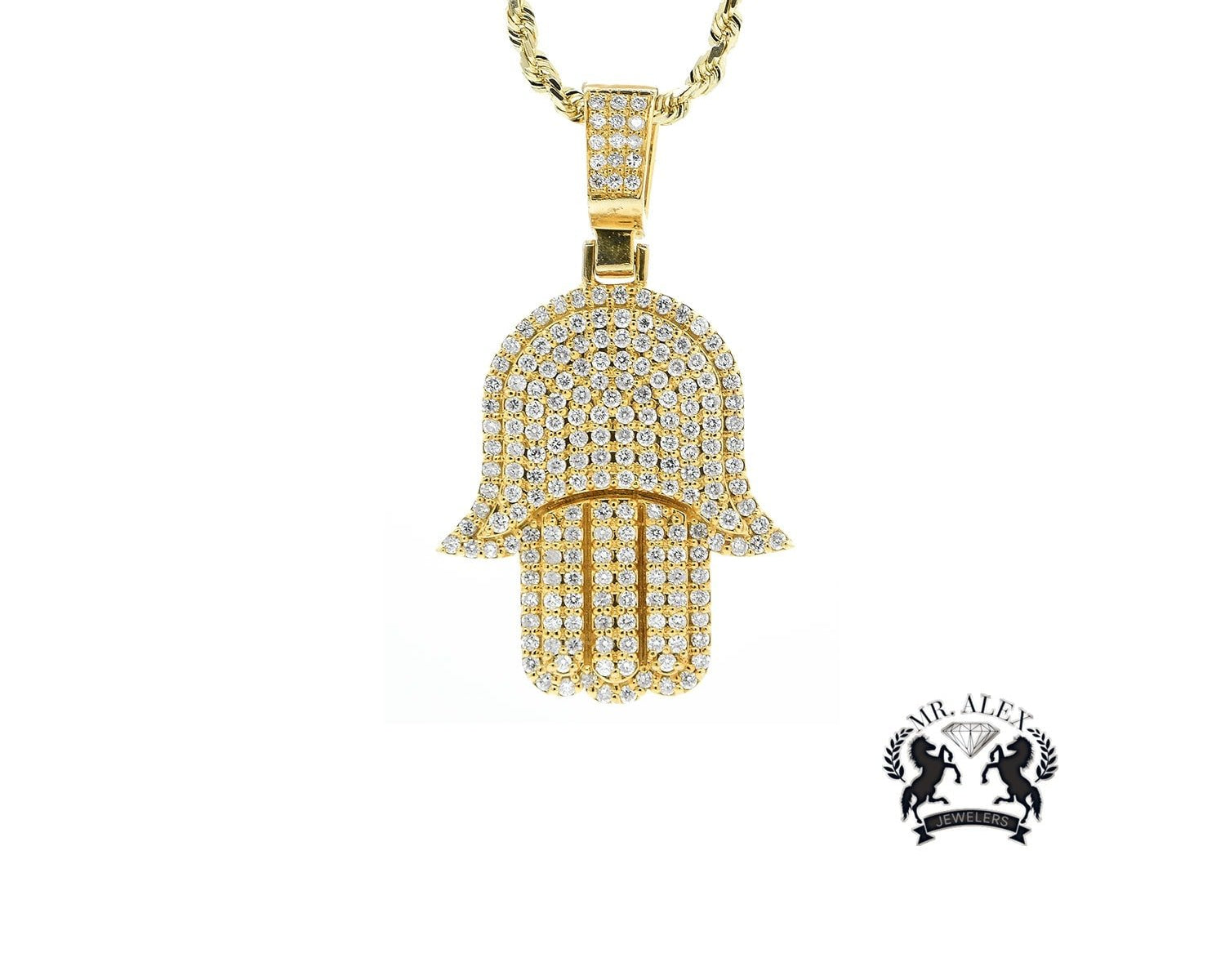 14K Hamsa Big Pendant 5.50ct Yellow Gold